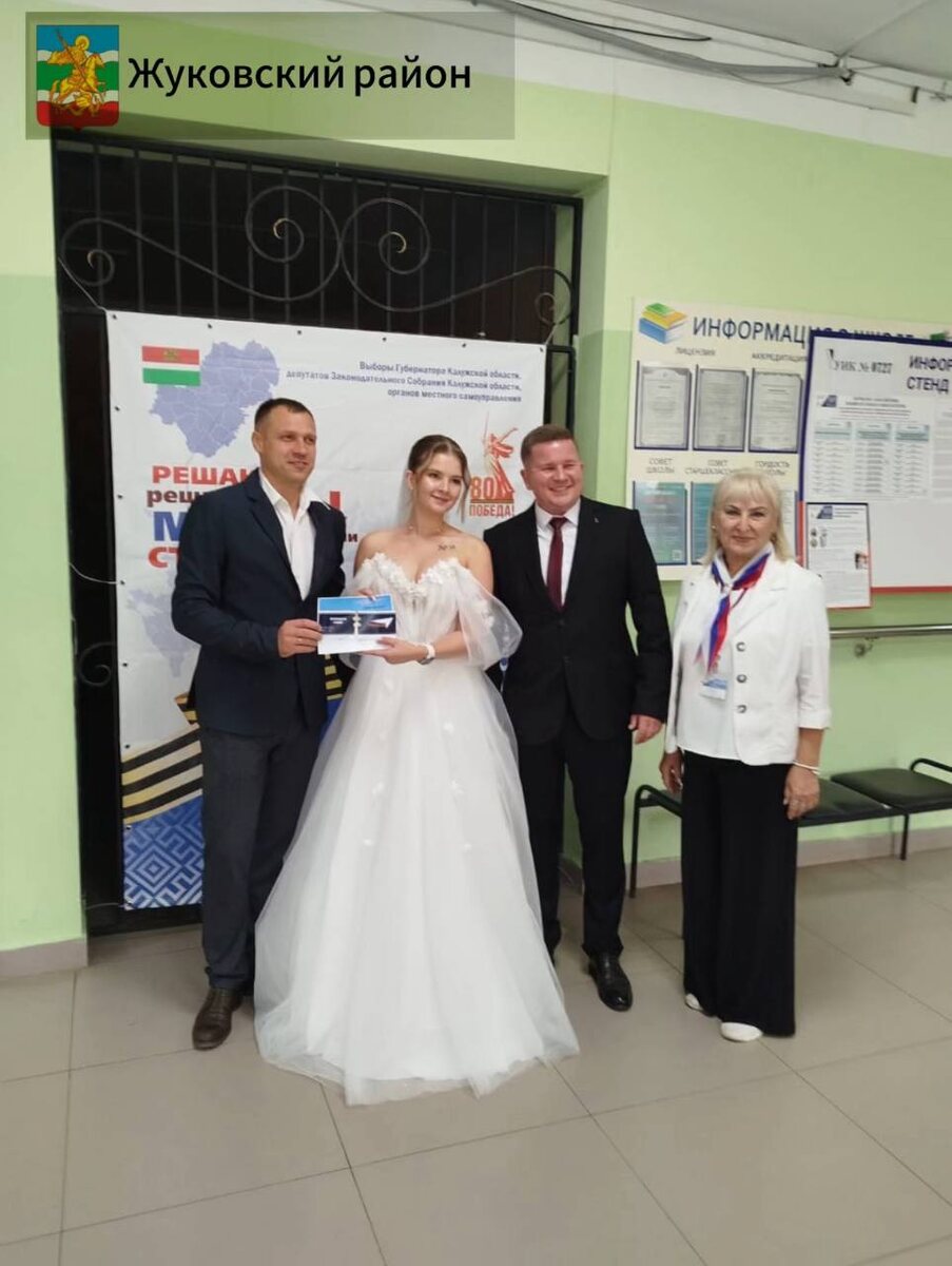 Невеста из города Жуков подарила себе и всем нам уникальный пример гражданской сознательности❤️ В один из самых важных дней в жизни — в день своей свадьбы — она нашла время сделать еще один выбор. Прямо после церемонии бракосочетания невеста посетила избирательный участок, чтобы отдать свой голос на выборах. Мы от всей сердца поздравляем с заключением брака и благодарим за проявленную ответственность! #Жуковскийрайон40 #Событие_недели_выборы40