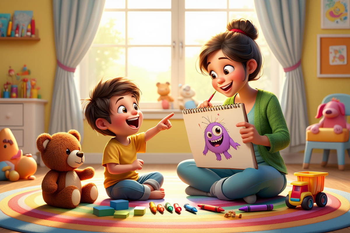 2. Работа со страхами через рисунок: Дайте ребёнку бумагу и краски, попросите нарисовать «страшного монстра», а потом превратить его в смешного. Это снижает тревогу.