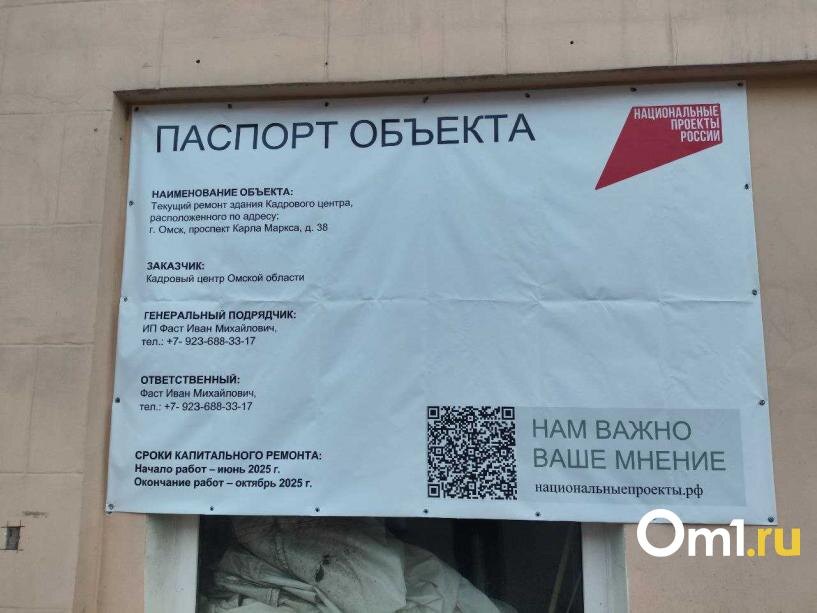 На нём сообщается, что работы проводит подрядчик ИП Фаст Иван Михайлович. Заказчик — Кадровый центр Омской области — планирует ремонт помещений и открытие кадрового центра. В каком он будет формате, пока неизвестно — возможно, это будет Молодёжный Кадровый центр, открытие которого «в самое ближайшее время» анонсировал губернатор Виталий Хоценко. Окончание работ запланировано на октябрь нынешнего года.