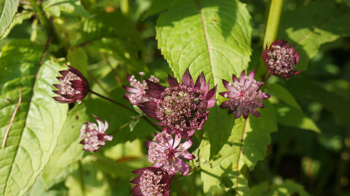 И вновь уходим от роз, пионов, лилий и ирисов. Кому-то и скромность не мешает, чтобы занять свое место. В моем детстве это растение называли "Звездовка". В старом "пособии" о том, что еще можно посадить, она так и зовется. Поэтому я не сразу поняла, что неземное название растения - про те же небольшие цветочки. Никогда к ним так близко не приглядывалась, а ведь в них целый Космос: Одиночный цветок может потонуть среди соседей: Однако астранция довольно быстро разрастается и создает интерсные ажурные эффекты в цветнике. Тем не менее, смотрите масштаб. Случайно затесавшаяся в монарда ярко демонстрирует размеры "планет". Она была запримечена в композициях с анемонами. С ними и посажена. Приобрела сразу три вида и, честно признаюсь, не все они одинаково полезны. В качестве дополняющего растения она просто прекрасна. Я даже думаю, что подойдет и к розам для контраста. Как сажают к ним тысячелистник птармика или гипсофилу. Будет более графичный контраст, например, с не махровыми роза