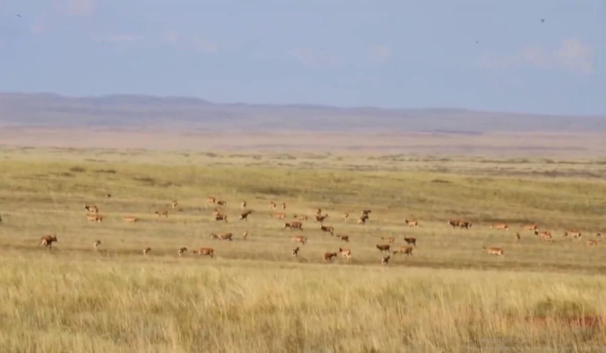Редкие кадры: миграцию сайгаков засняли в Карагандинской области (ВИДЕО)
