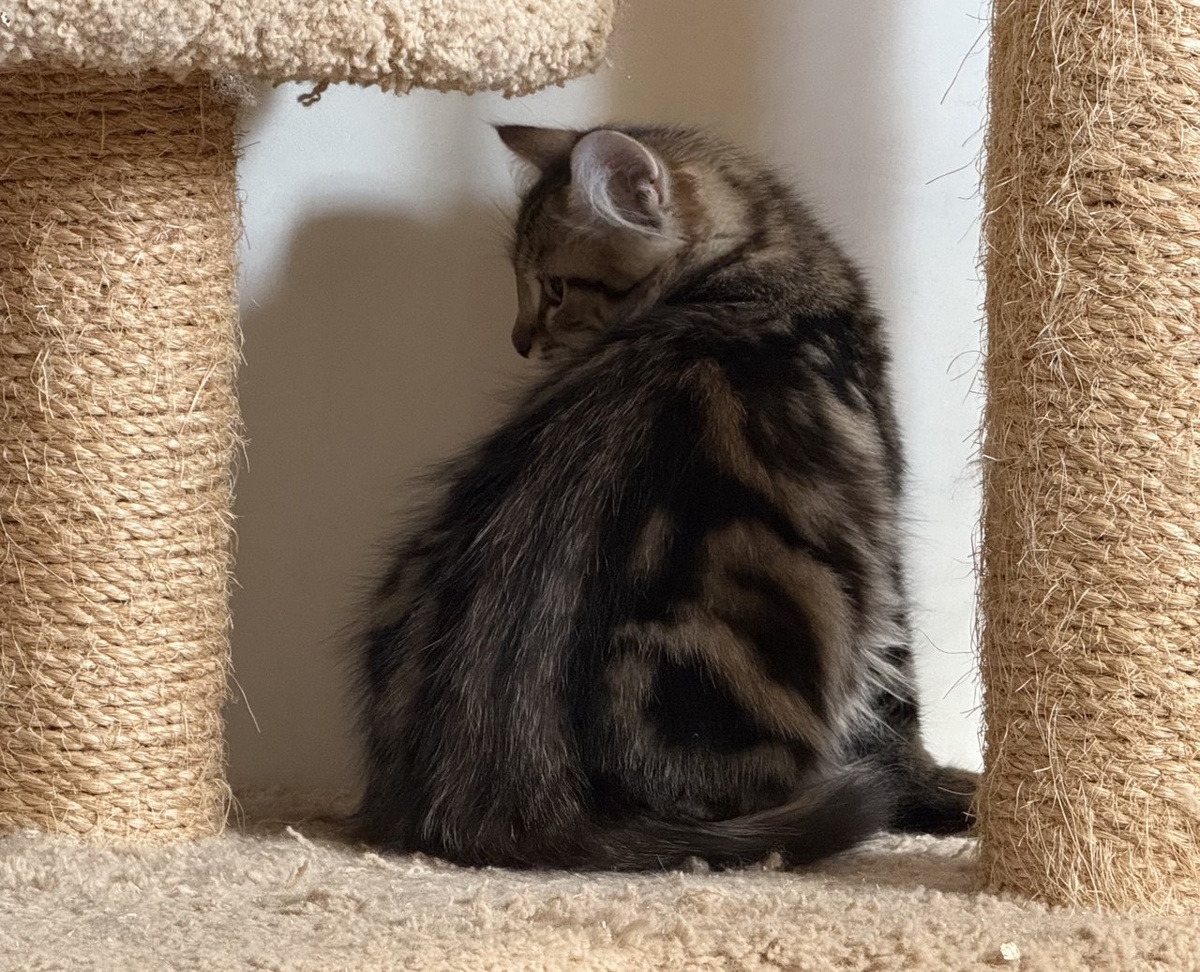 Есть 2 очень красивых чёрных мраморных кота! Свободные! 4 месяца возраст! Готовы к переезду! Нужны хорошие ответственные хозяева ! Посмотрите на рисунок на спинке котика - это ж произведение искусства 😀💝