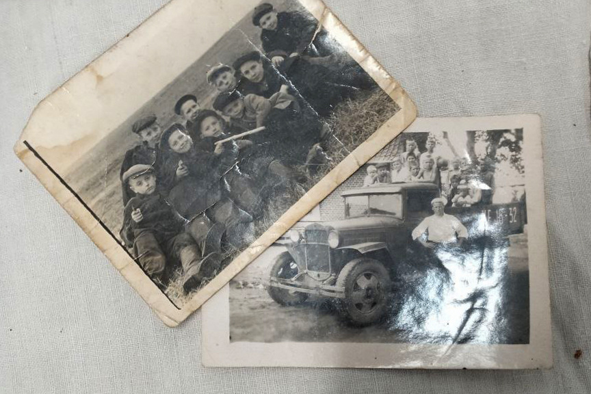 Предметы и истории попадают в Народный музей разными путями. Кто-то приносит их прямо в фонды, не страшась трудного подъема на высокий этаж, кто-то передаёт через сотрудников Громовой или Маховой башен. Но бывает и так, что сотрудники музея приходят домой к владельцам семейных раритетов. Такие выезды называют экспедицией. Так, недавно музейщики побывали в гостях у Галины Николаевны Урбанайть. Визит затянулся на несколько часов. Долгое время рассматривали переданные вещи, фотографии, слушали рассказ о многочисленном дружном семействе, проживавшем до войны в Руднянском районе. Галина передала в дар целую коллекцию предметов, связанных с историей её семьи и родного края. У отца Галины Николая Филипповича Жигалева было два брата – Егор и Иван. Оба в первые дни войны отправились на фронт. Николай был еще слишком молод, на фронт не попал, а ушел в лес с партизанским отрядом. Егор вернулся домой без ноги, а Иван пропал без вести. Спустя много лет Галина узнала своего дядю по фотографии, показ