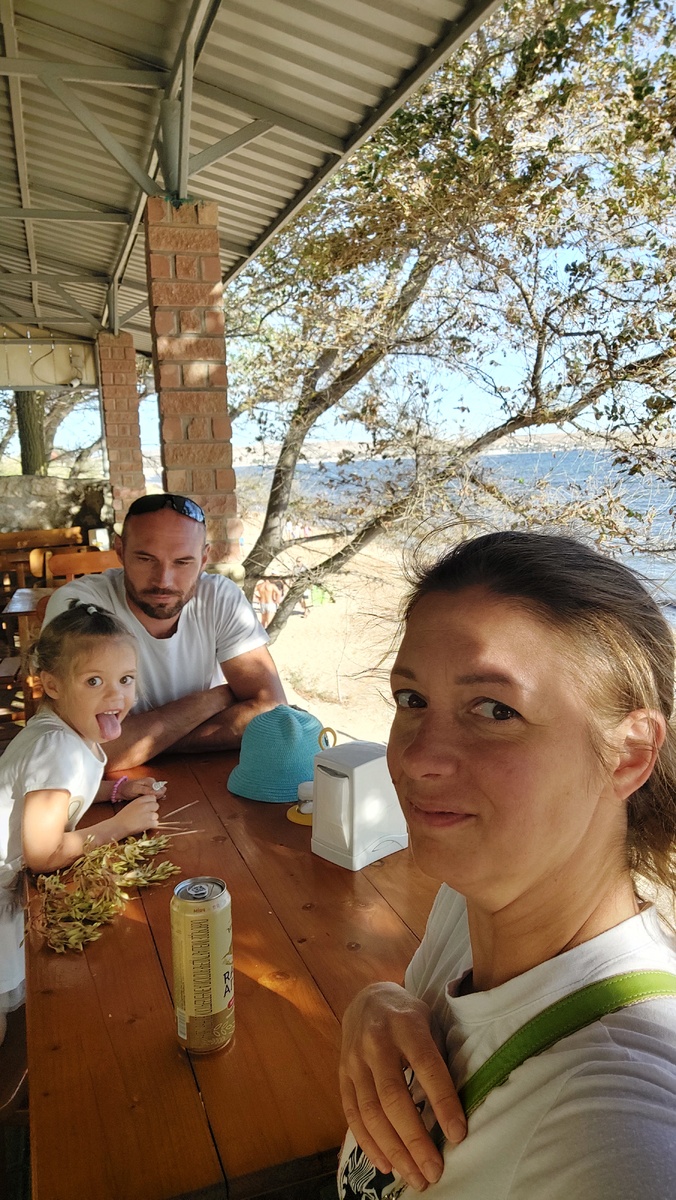 Щёлкино - небольшой посёлок на побережье Азовского моря, известный ветреным климатом, что делает его одним из любимых мест для виндсерферов. Люди приезжают не столько из-за курортной инфраструктуры, сколько чтобы поймать сильный бриз, покатать на кайтсерфинге, собрать ракушек и провожать сансеты. В первый день нашего приезда море кишило медузами и субстратом куда медузы откладывают икру, на вид размазанные коричневые водоросли, которые нельзя взять руками. Ощущение грязного моря и неприятно заходить. Но уже на следующий день ветер поменялся, всё это «морское добро» сдуло, вода стала чистой, и мы с дочкой целый день провели на пляже: закапывались в песок, хоронили единичных оставшихся медуз, собирали ракушки. А папа катал под парусом - ветер для этого был идеален. Медузы здесь другие, не как на Чёрном море: они тут плотные, твёрдые, почти как гелевые шарики. Не тонкие и прозрачные, а такие мощные, я бы сказала. Пляж тут приятный мелкоракушечный песок: смесь песка и перемолотой ракушк
