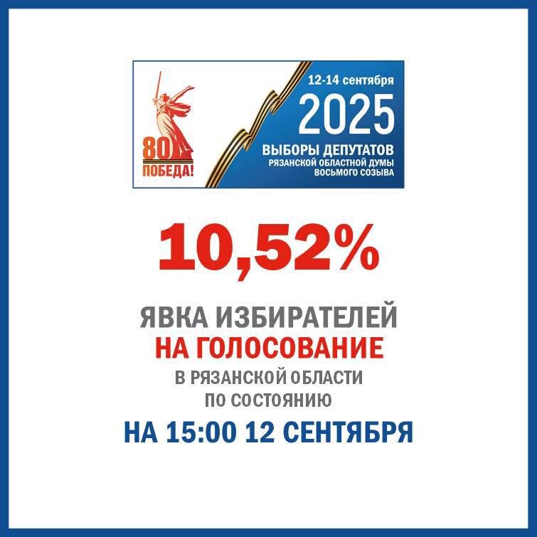 К 15:00 явка избирателей на голосовании в Рязанской области составила 10,52 %