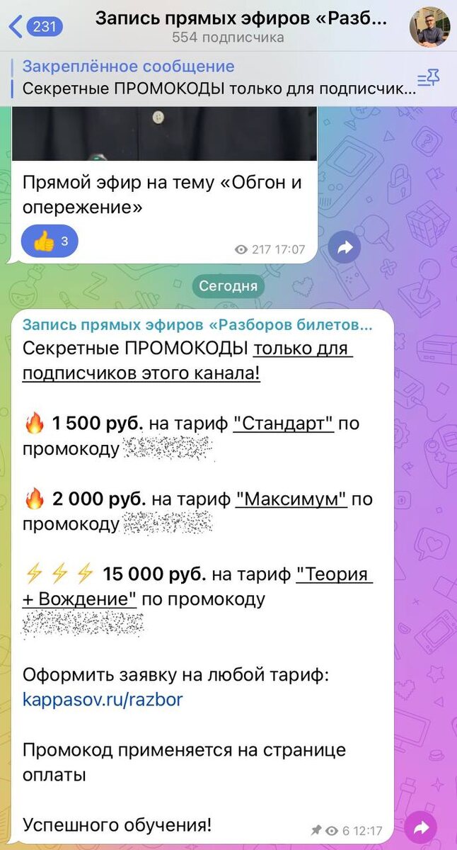 Сезон обучения в автошколах в самом разгаре! Как не просто выучить билеты ПДД, но и понять все правила, сдать экзамен с первого раза и потом применять эти знания в жизни?! В этом помогут наши «Разборы билетов ПДД»! Для всех учеников автошкол приготовили бонус! Промокод на скидку — в нашем закрытом канале: https://t.me/tribute/app?startapp=sfOa Скидка составит от 1500₽, т.е. нашу подписку в 590₽ вы отобьете за одну покупку ➕ доступ ко всем прямым эфирам, которых нет в открытом доступе. Надо забирать прямо сейчас 👇 https://t.me/tribute/app?startapp=sfOa