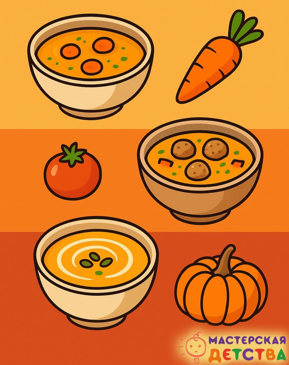 🍂 ТОП-3 осенние супы, которые любят дети Осень — время, когда особенно важно согревать организм вкусной и полезной едой. Тёплые супы не только заряжают энергией, но и помогают детям легче переносить переменчивую погоду. 📷 Ловите простые и проверенные идеи: 🍂 Овощной суп-пюре Морковь, картофель, тыква или брокколи превращаются в нежное пюре, которое нравится даже самым маленьким. Можно добавить сухарики — и блюдо станет ещё интереснее. 🍲 Суп с фрикадельками Лёгкий и сытный вариант: маленькие мясные шарики всегда вызывают у детей восторг. Добавьте лапшу или мелкие макарошки — и тарелка опустеет в два счёта. 🎃 Тыквенный суп с сливками Яркий цвет, мягкий вкус и сладковатая нотка делают этот суп любимым у детей. А ещё — это кладезь витаминов, необходимых в осенний сезон. ✨ А какие супы любят ваши дети? #МастерскаяДетства