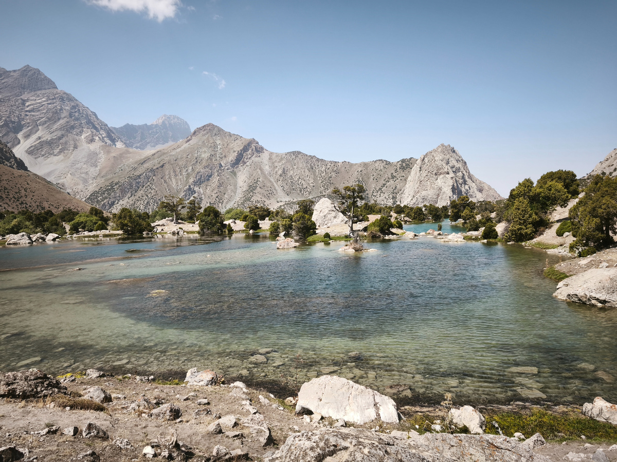 Продолжаем идти вдоль озёр. Вода прозрачнейшая! Фото от Юли: Появляются палатки, стоянки... Фото Руслана