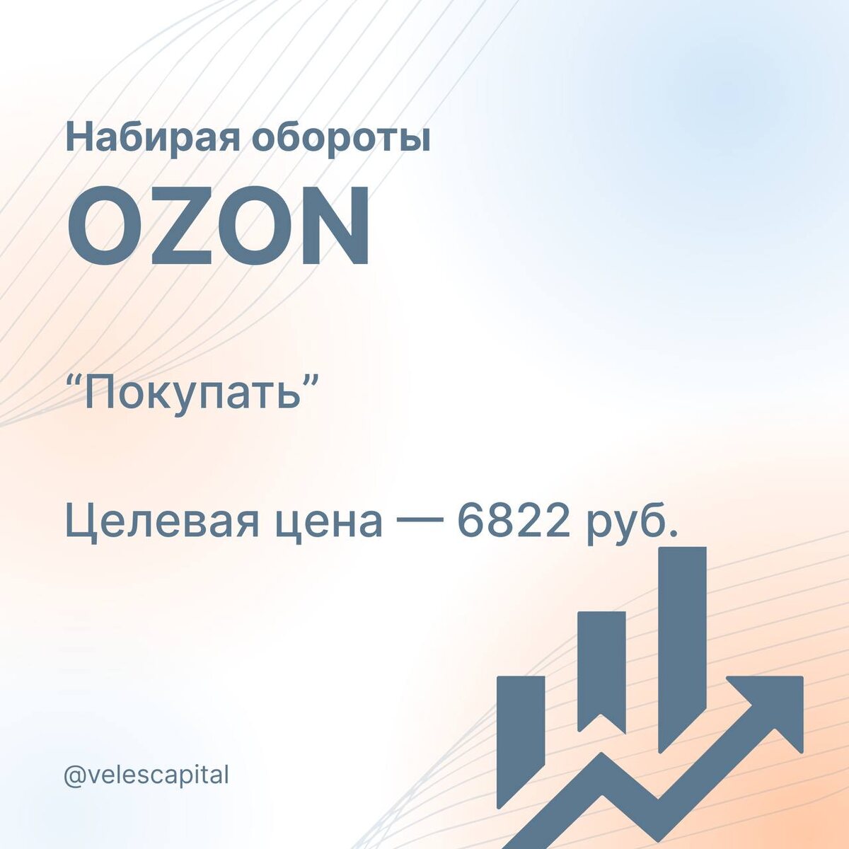 📤Ozon продолжает укреплять свои позиции на динамично развивающемся рынке онлайн-торговли в России. Мы по-прежнему считаем Ozon одной из лучших ставок в отечественной розничной торговле. 🧮Согласно расчетам, оборот торговой площадки за 5 лет вырастет более чем в 3 раза, а EBITDA может увеличиться за этот период в 10 раз. Этому будет способствовать среднегодовой рост рынка на уровне 23%, а также повышение операционной эффективности и развитие финтеха. 🛍Позитивным фактором для бумаг компании может стать предстоящая редомициляция, что снимет многие существующие ограничения. 🛍Начавшийся цикл снижения ключевой ставки дополнительно формирует благоприятные условия на рынке и позволит пересмотреть в меньшую сторону ставки дисконтирования. 🛒Наша рекомендация для расписок Ozon остается «Покупать», а целевая цена повышена до 6 822 руб. за бумагу. ❗️Подробный обзор доступен по ссылке. (https://veles-capital.ru/upload/iblock/9cb/75i4hbqkixlg92818ff2c15sk3tihj0h.pdf) Аналитик: Артем Михайлин Не я