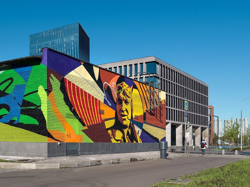 Asterus & ZUKCLUB: как четыре стихии и один подвиг Чкалова создали новый культурный код жилого района ÁLIA Представьте: вы гуляете по новому району на северо-западе Москвы. Летнее утро, асфальт только начинает нагреваться, всё привычно, всё своё. И вдруг взгляд цепляется за стену обычного здания электрощитовой. Цвет. Движение. Кажется, будто само здание собирается взлететь. Это мурал, посвященный легендарному перелету Валерия Чкалова через Северный полюс, — работа, которая стала визуальным и эмоциональным сердцем района ÁLIA.