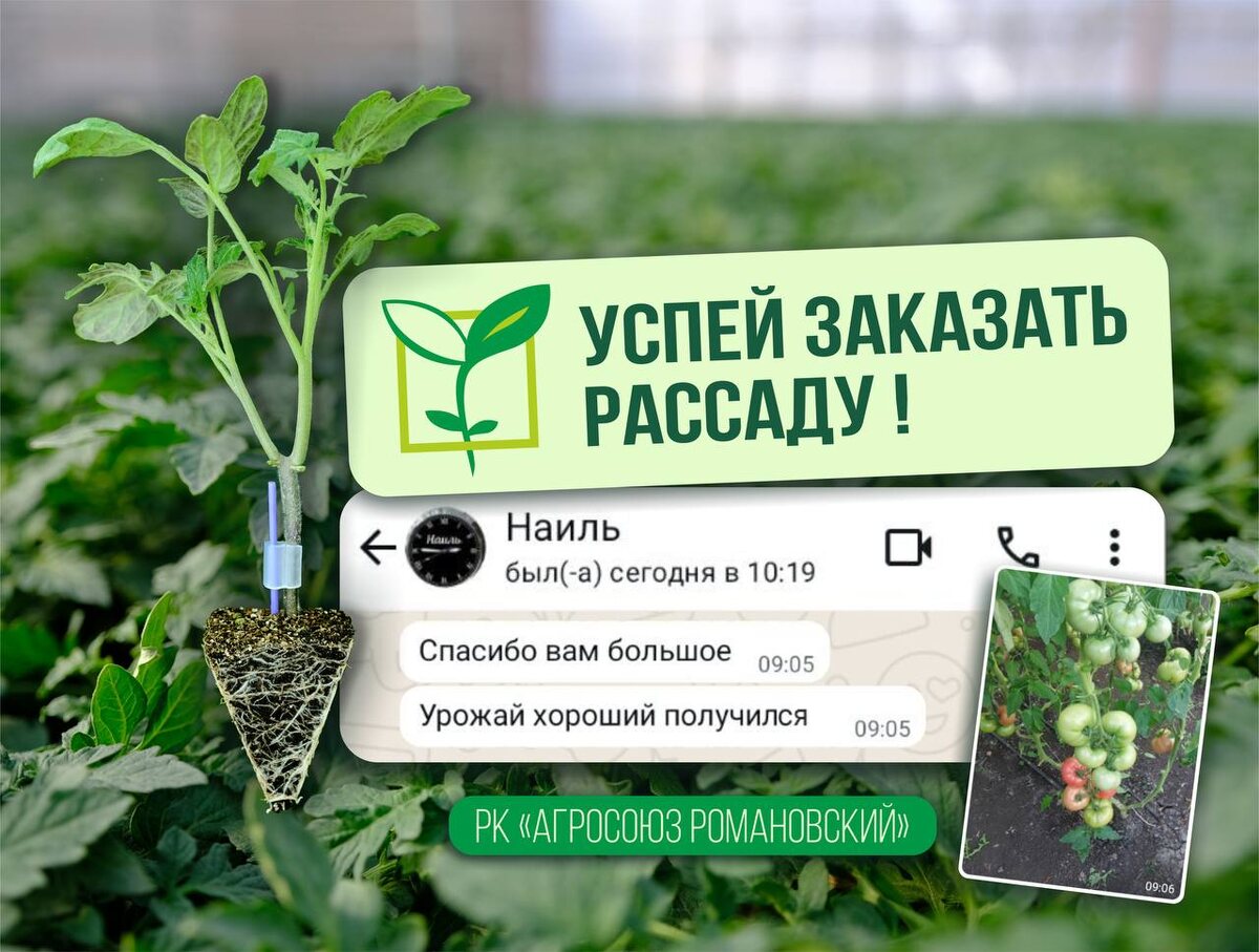 📆 Пора готовиться к осенне-зимнему сезону и позаботиться о рассаде! 🌱 ✅ Мы помогём вырастить для вас рассаду лучших сортов овощей и бахчевых. Наш рассадный комплекс оснащён новейшими технологиями, обеспечивая идеальные условия для роста растений. Мы поддерживаем оптимальный микроклимат и используем автоматизированные системы, чтобы гарантировать здоровье и крепость рассады под наблюдением опытных агрономов. 🟢🟢🟢🟢🟢 Площадь теплиц ограничена! Наши менеджеры с удовольствием ответят на все ваши вопросы и предложит лучшие условия. 📞 Телефон: +79014174989 🌐 Сайт РК «Агросоюз Романовский» ✅ Чем раньше вы сделаете заказ, тем раньше мы сможем вырастить для вас сильную и здоровую рассаду. 🍅🥒