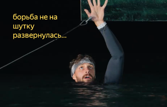 И тут Митя Фомин усложняет испытание, нужно не одну руку, а сразу две положить на чек-стекло и не отрывать ни в коем случае. Как только задание изменилось, Эмма не смогла его выполнить. Она отпустила одну руку. Странная ошибка. До этого она уверенно стояла в воде. Мне показалось, что она победит. А вот Вася начал кричать от напряжения. Руки закисают в таком положении. Нет, Эмма вылетает из тройки финалистов. И через некоторое время отрывается одна рука от стекла и у Рыбина.