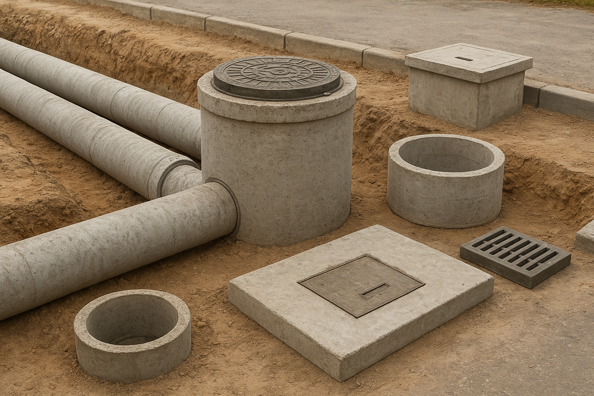 Эта отрасль охватывает широкий спектр сборных железобетонных изделий (ЖБИ), предназначенных для прокладки, защиты и обслуживания подземных сетей. К основным элементам относятся:
