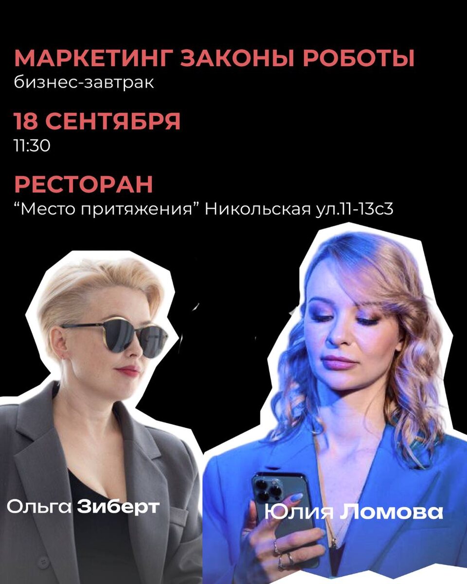 Друзья, встретимся на бизнес-завтраке Оли Зиберт и Юлии Ломовой. Буду сам и вас приглашаю. Увидимся уже на следующей неделе. На завтраке будет: 1. Рабочие связки по генерации трафика в соц сетях 2. Как сделать эти связки по закону 3. Как встраивать нейросети в свою работу по генерации трафика с соц сетей: автоворонки и посевы 4. Суть — рабочие связки, которые реально дают результат даже при ограниченном бюджете и новых поправках к законам. Неторкинг наше все. Люди решают. Приезжайте — познакомимся, увидимся, пообщаемся. 📅 18.09 ⏰ 11:30 📍 Москва. Ресторан "Место притяжения", ул. Никольская ул.11-13с3 Формат: Бизнес-завтрак с полезным нетворкингом Стоимость: 6000₽ *Завтрак включён 👇 Забронировать участие можно по ссылке