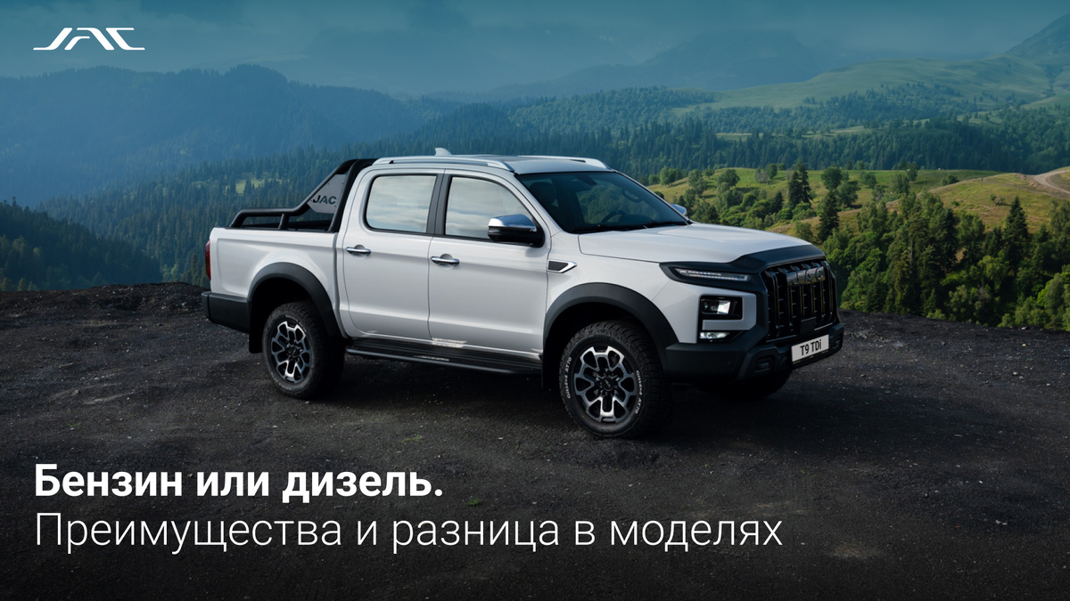 Россияне с первого взгляда полюбили JAC T9: он с первых месяцев присутствия на российском рынке ворвался в топ продаж и неоднократно становился самым популярным пикапом страны. Всё это время машина была доступна с единственным двигателем — бензиновым турбомотором объемом 2,0 литра. Но с дебютом новой версии JAC T9 TDi поклонники пикапа встали перед непростым выбором: бензин или дизель?