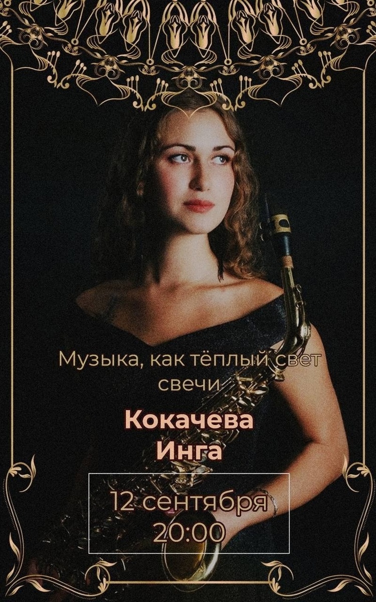 Сегодня, 12 сентября, в 20:00 приглашаем вас на атмосферный концерт талантливой саксофонистки Инги Кокачевой — «Музыка, как тёплый свет свечи». ✨