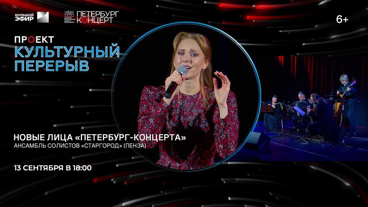 Завтра в 18:00 на телеканале «Большой эфир» от «Триколор» в рамках программы «Культурный перерыв» запускается проект «Новые лица «Петербург-концерта», откроет который выступление Губернаторского ансамбля солистов «Старгород». Авторские аранжировки и оригинальные переложения классических произведений отечественных и зарубежных композиторов, свободные фантазии на темы русских народных мелодий, попурри и фантазии на темы эстрадных шлягеров. Вместе с ансамблем солистов «Старгорода» на сцене Большого зала Екатерининского собрания выступят лауреат международных конкурсов, солистка Центра русской хоровой и вокальной культуры города Пензы Алёна Босолаева и солист «Петербург-концерта» Сергей Зыков (баритон). Прямой эфир телеканала доступен обладателям спутникового телевидения «Триколор», а также всем желающим по ссылке.