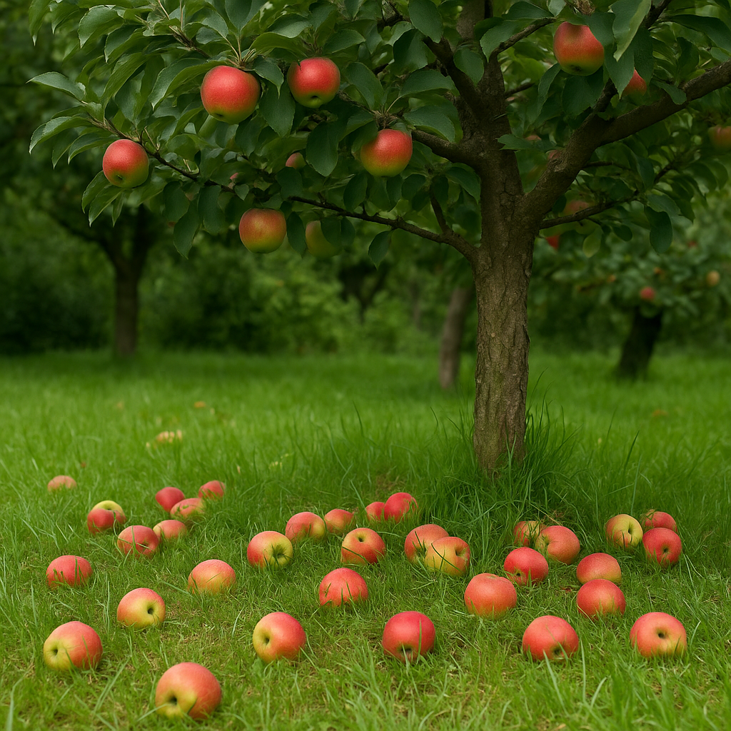 Наверняка у многих из вас было такое: приходишь в сад в августе или сентябре, а под яблоней — целая гора плодов. И вроде ещё рано собирать урожай, яблоки не дозрели, а они уже лежат на земле. Хочется понять: это нормально или что-то не так? Давайте разберёмся, почему яблоки осыпаются раньше времени и как с этим бороться. Природа сама регулирует количество плодов. Если весной завязей образовалось слишком много, дерево сбрасывает часть яблок, чтобы оставшиеся выросли крупнее и здоровее. Это можно наблюдать уже в июне, но иногда процесс продолжается и позже, если дерево понимает, что «сил не хватает». Резкие перепады с засухи на дожди — настоящая беда для яблонь. Корни не успевают адаптироваться, и плоды начинают падать. При засухе яблоня «экономит силы» и избавляется от лишнего. А если поливать слишком много — корни могут задыхаться, и дерево тоже реагирует сбросом яблок. Часто яблоки осыпаются, если дереву не хватает калия и кальция. Тогда плоды плохо держатся на плодоножке, быстро жел