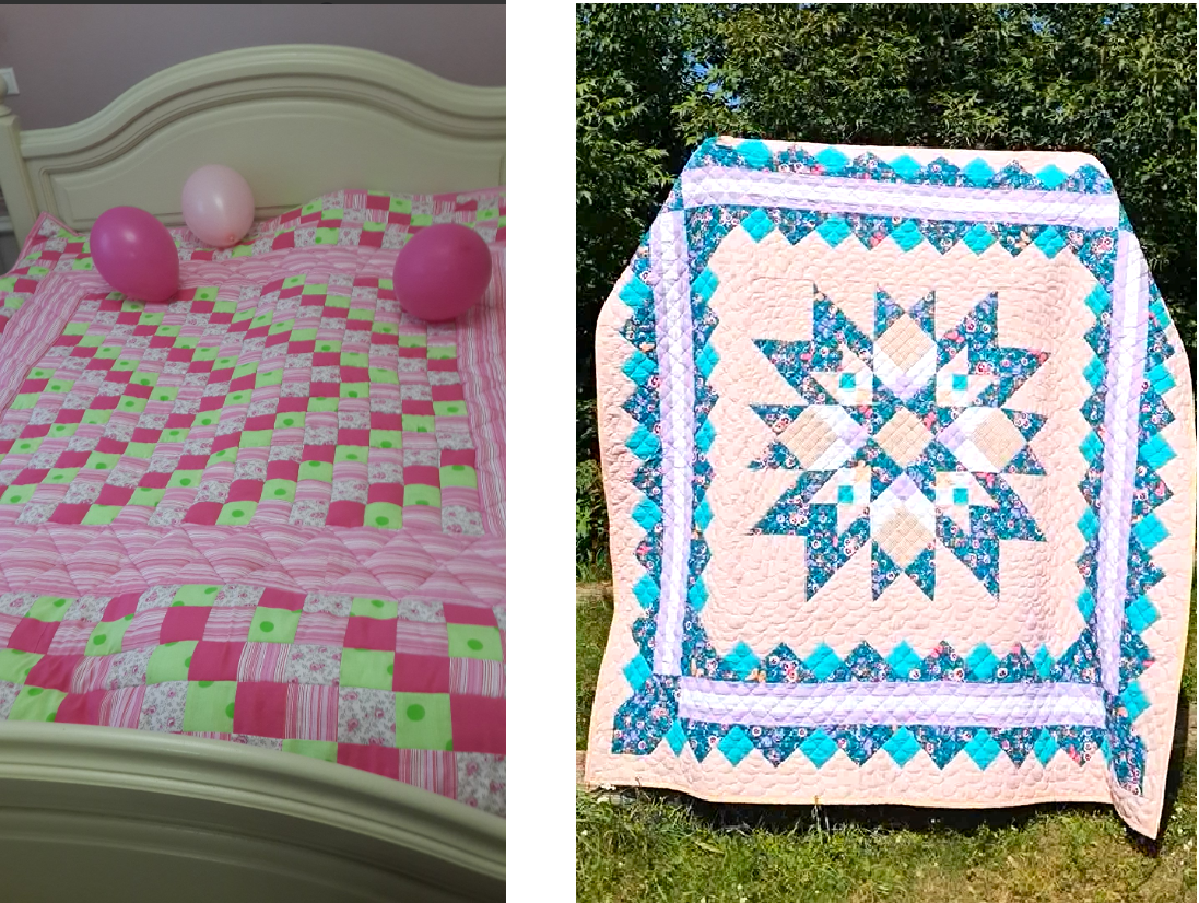 Оба эти одеяла - моих рук дело, и я их нежно люблю. То, что слева, розовое, яркое и радостное, я шила много лет назад для своей дочери, и оно оказалось очень удачным, потому что успешно эксплуатируется все эти годы и не вызывает нареканий. Сейчас, спустя годы, я понимаю, что можно было сшить его по-другому, гораздо лучше и интереснее. Но в то время я считала его лучшей своей работой и гордилась им. Мне было невдомек, что я сама могу больше, но пока не умею. Одеяло со второй фотографии сшито совсем недавно. Оно гораздо сложнее в исполнении и в дизайне, потребовало множество знаний и практических навыков. Казалось бы, можно гордиться, но глядя на него, я понимаю, как много еще хочу освоить и попробовать. Итак, как говаривал большой умница Альберт Эйнштейн, "Чем больше я узнаю, тем больше я понимаю, как много я не знаю."