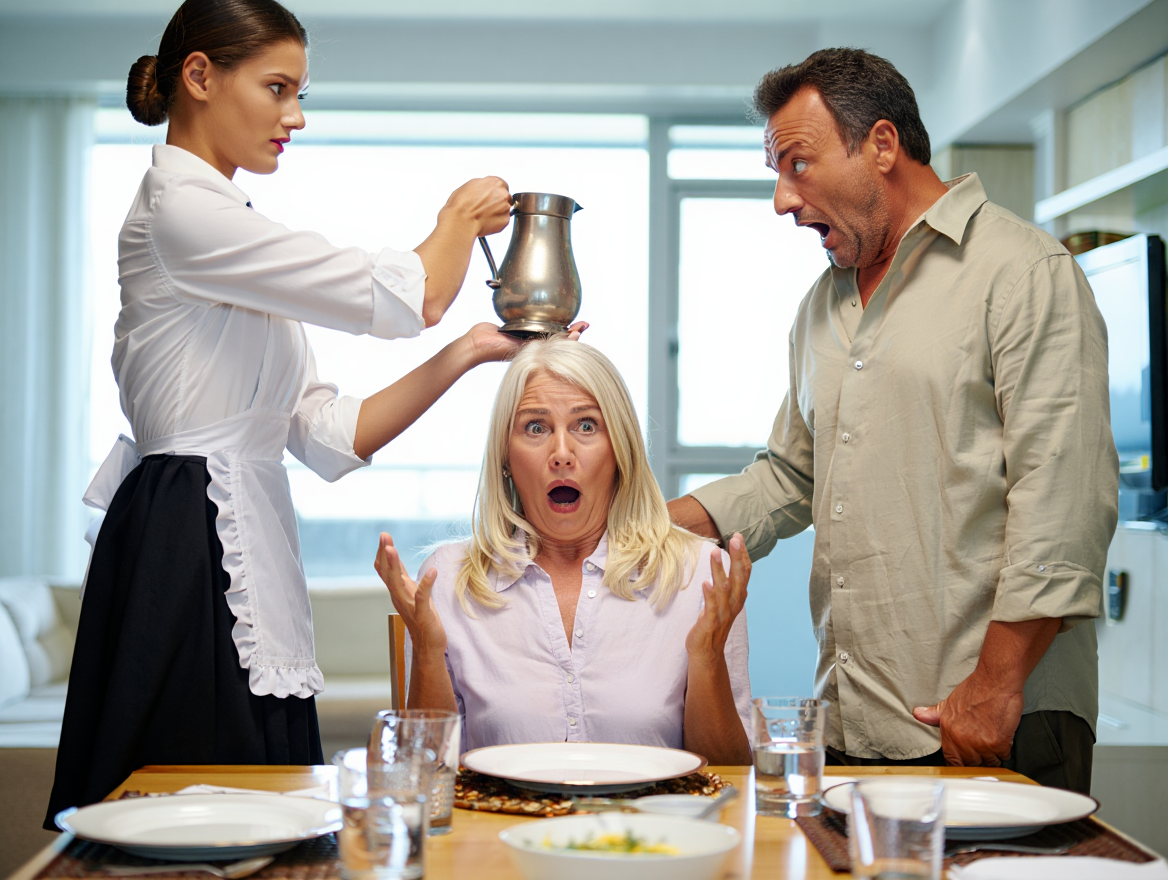 Компот обрушился на безупречную причёску свекрови. Алла Сергеевна заверещала, попыталась встать и поскользнулась на мокром паркете.
