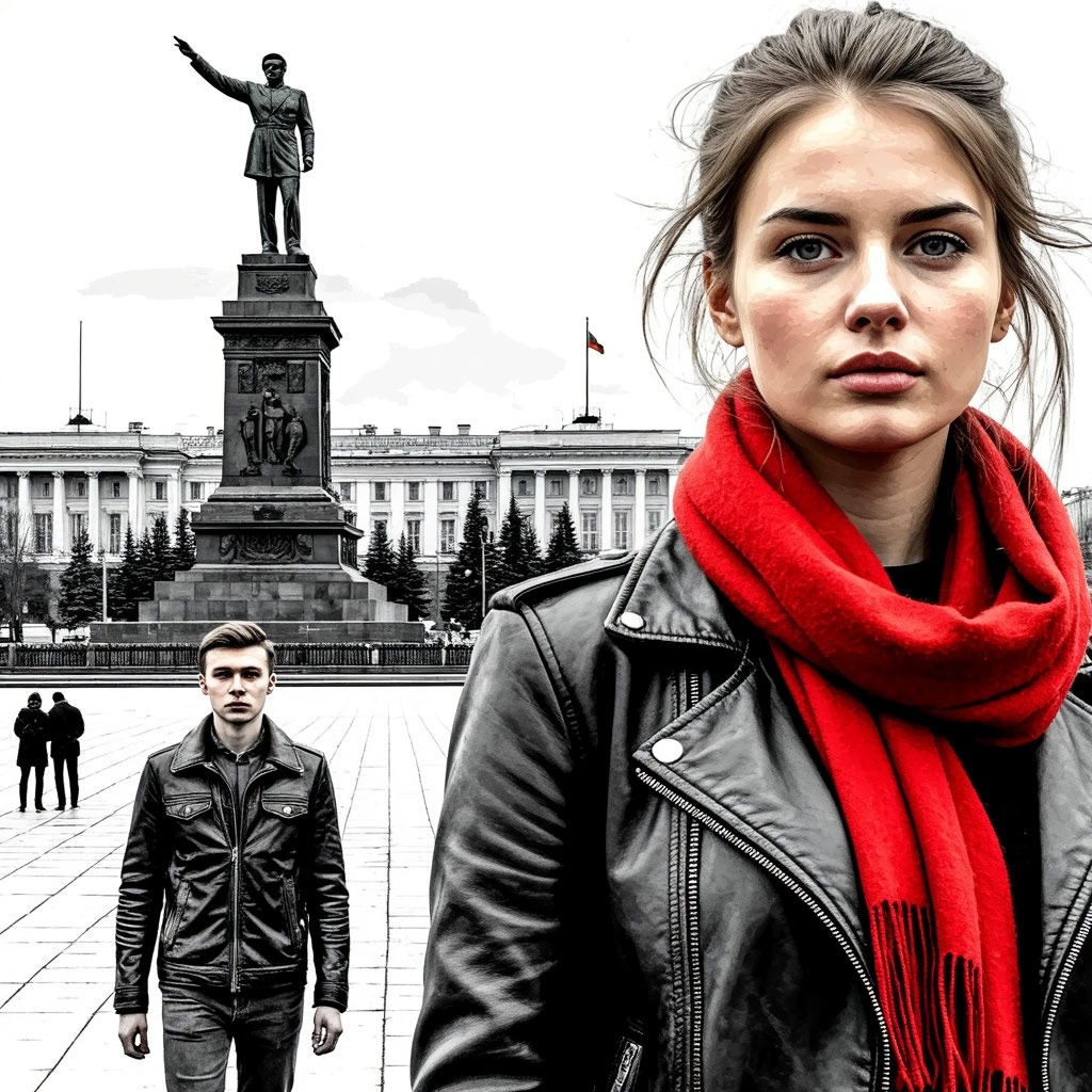 Красная Алла у памятника Ленину