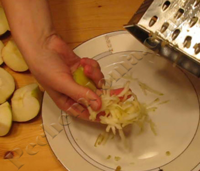 Для начинки из яблок удалите сердцевины, снимите кожуру, а затем натрите на крупной терке.