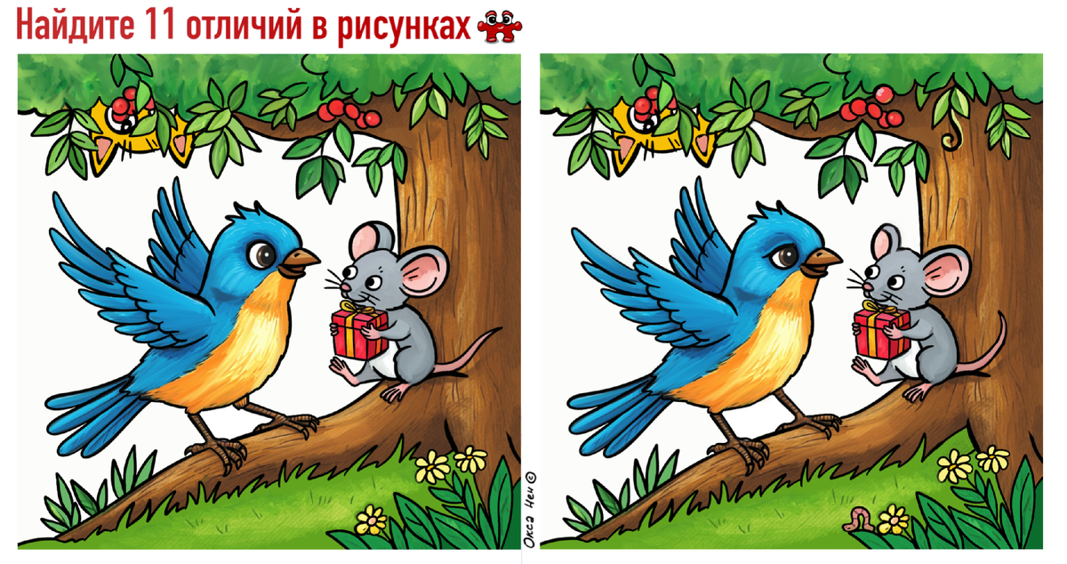 Всем доброго вечера и прекрасных выходных! Свежий тест с забавным сюжетом про мышку, которая дарит подарок птичке. Где-то на картинке и кот спрятался. Отличия сегодня не самые простые. Кто справится - тот молодец :)