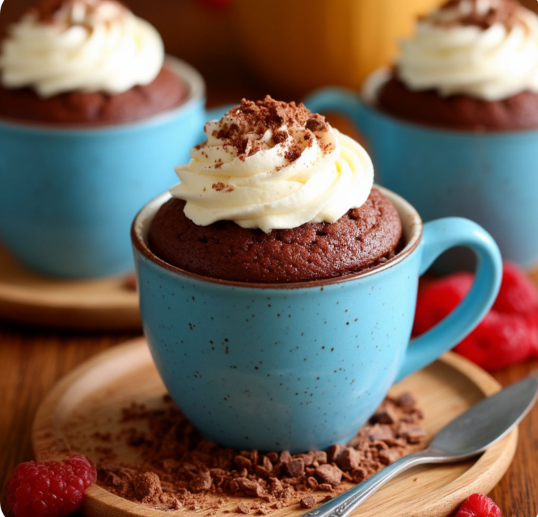 Приготовим быстрые и вкусные кексы в кружках прямо в микроволновке всего за 5 минут! Сначала приготовьте кофейную смесь: в чашку добавьте 1 ч.л. растворимого кофе и залейте 5 ст.л. кипятка, хорошо перемешайте. В отдельной кружке (подходящей для микроволновки) смешайте 4 ст.л. пшеничной муки, 3 ст.л. сахара, 2 ст.л. какао-порошка и 1 ч.л. разрыхлителя. Тщательно перемешайте сухие ингредиенты до однородного состояния. Влейте в кружку с сухими ингредиентами приготовленную кофейную смесь. Добавьте 3 ст.л. рафинированного подсолнечного масла и одно куриное яйцо. Хорошо перемешайте все ингредиенты вилкой до получения однородной массы без комочков. Убедитесь, что тесто достаточно жидкое, но не водянистое. Поставьте кружку с тестом в микроволновую п