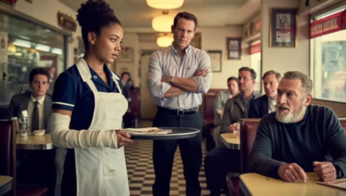 Воздух в закусочной был густым и привычным: запах горелого кофе, жареного бекона и моющего средства. В утренней суете, среди звона посуды и гомона голосов, кружилась Эмили Джонсон. Её правая рука ловко управлялась с тяжёлыми подносами, а левая, туго забинтованная, беспомощно прижималась к фартуку. Каждое неловкое движение отзывалось в ней болью, но она стиснула зубы и работала за троих.