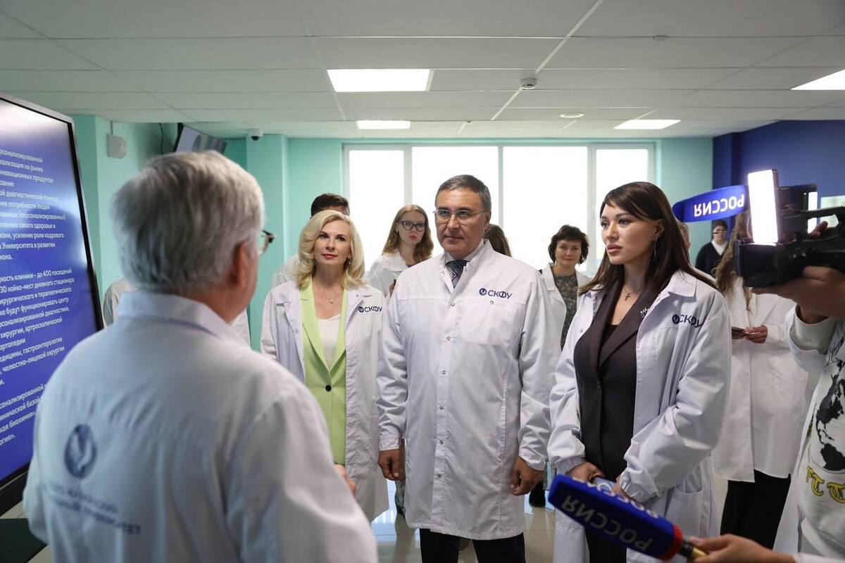 Министр науки и высшего образования Валерий Фальков в ходе рабочего визита в Ставропольский край посетил Северо-Кавказский федеральный университет, где ознакомился с работой геномного центра и планами создания клиники персонализированной медицины. Министр изучил инфраструктуру кампуса «Север», материально-техническую базу и перспективные исследования геномного центра. Научная деятельность центра направлена на создание панели для генотипирования сельскохозяйственных животных и повышения урожайности растений. Специалисты СКФУ проводят генетическую паспортизацию плодовых, зерновых и кормовых культур Северного Кавказа. Создана библиотека ДНК культурных растений: пшеницы, ячменя, плодовых культур. Разработаны генетические матрицы для паспортизации сельскохозяйственных растений. Коллектив геномного центра работает над повышением мясной продуктивности овец и развивает механизмы улучшения племенной ценности потомства. Исследования проводятся совместно с Северо-Кавказским федеральным научным аг