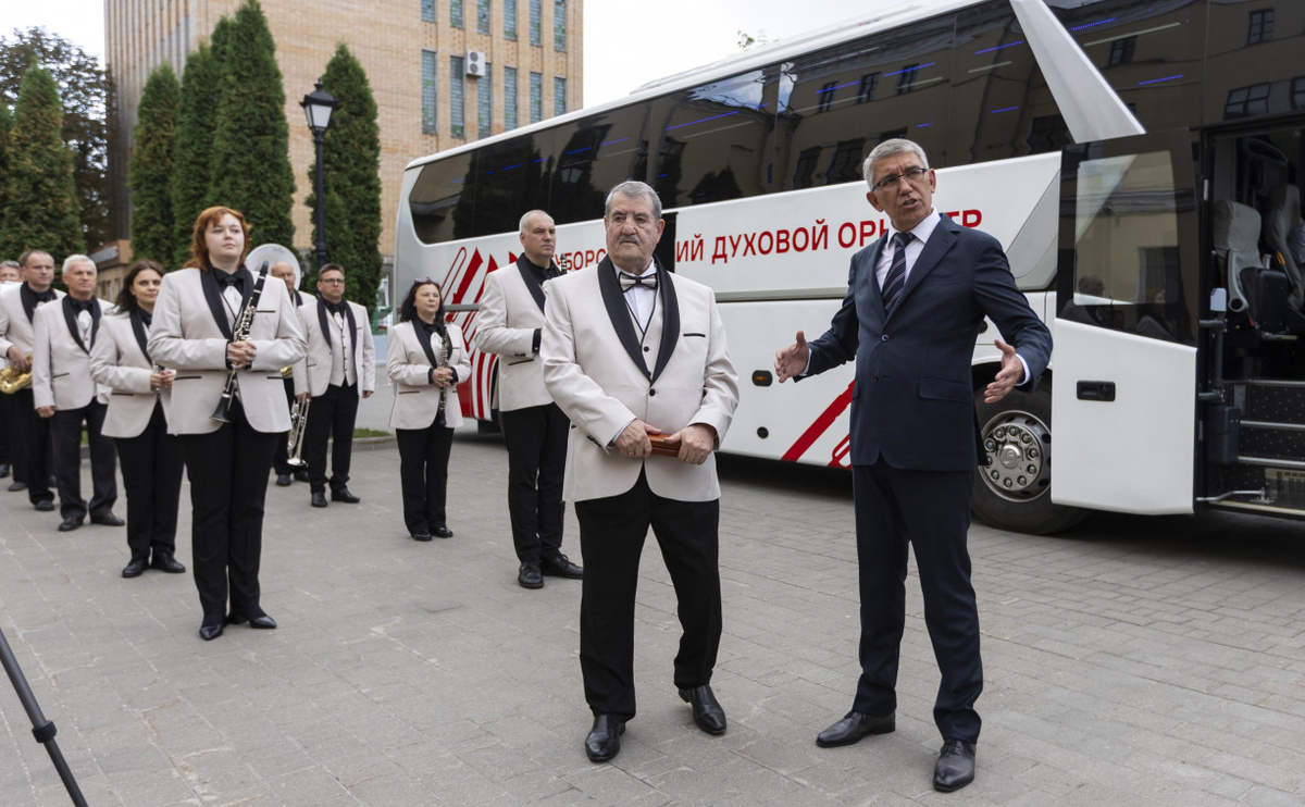 Губернатор Дмитрий Миляев лично вручил музыкантам ключи от нового автобуса на торжественной церемонии. У музыкантов появился свой личный комфортабельный автобус на 55 мест. Транспорт Губернаторскому оркестру подарили в преддверии его 30-летнего юбилея. В новом транспорте Губернаторский оркестр сможет больше гастролировать не только по Тульскому региону, но и по всей России. В автобусе предусмотрены специальные отсеки для безопасной перевозки музыкальных инструментов и другого оборудования. 12 сентября губернатор Дмитрий Миляев приехал в Дом Дворянского собрания, чтобы лично передать ключи от нового автобуса руководителю и создателю оркестра Полиславу Балину. — Вы выступаете не только в Тульской области, но и активно участвуете в международных конкурсах и гастрольной деятельности. Уверен, что с приобретением нового автобуса ваши поездки станут более комфортными. Спасибо вам за верность профессии и за то, что украшаете мероприятия своей музыкой. Основатель и руководитель оркестра Полисла
