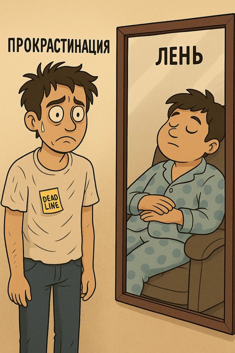 Нет, не в том смысле, что мы будем дружно прокрастинировать, а вместе разберемся, что это за зверь такой. Многие до сих пор думают, что прокрастинация — это просто нежелание работать/учиться/заниматься повседневными делами, то есть банальная лень. Но на самом деле между ними есть большая разница. 📕 Лень — это пассивное бездействие без особого дискомфорта, то есть буквально отсутствие желания действовать. А прокрастинация — активная внутренняя борьба, весьма изматывающая и разрушительная. Ты хочешь что-то сделать, знаешь, что это важно, но...не делаешь. Почему так происходит? 📌 В основе механизма прокрастинации лежит избегание неприятных эмоций, связанных с выполнением задачи: например, тревоги, страха неудачи, скуки, фрустрации. Ты знаешь, что нужно сесть писать диплом/отчет/важное сообщение. Ты даже примерно представляешь, что писать. Но в голове уже начинают крутиться мысли: – «А вдруг получится плохо?» – «С чего вообще начать?..» – «Если не выйдет идеально, какой в этом смысл?» –