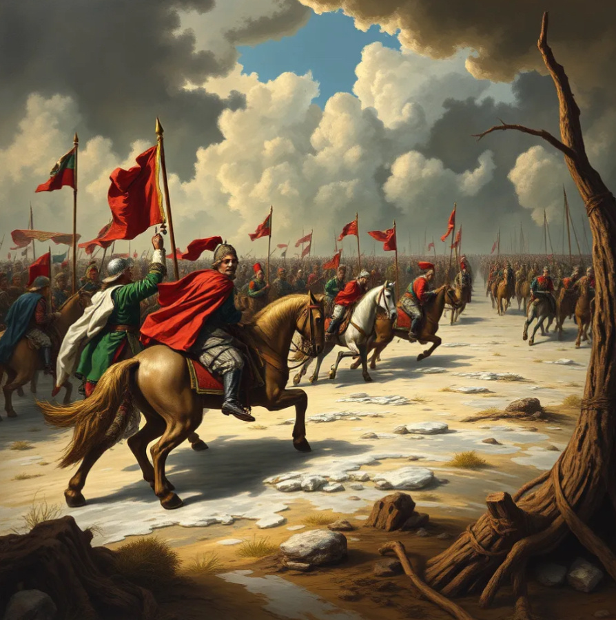 · Карл V Мудрый, король Франции: не воин, но блестящий стратег и интриган. Режиссер партизанской войны. · Бертран дю Геклен: неказистый, незнатный бретонский рыцарь. Гений тактики. Главный полководец Карла. Сцена: После мира Франция не успокоилась. Карл V понял: лобовые атаки на английские луки — самоубийство. Он меняет тактику: · Партизанская война: Изматываем англичан мелкими стычками, рейдами, нападаем на обозы. · Избегаем генеральных сражений: Нет битв — нет новых Креси. · Тактика выжженной земли: Отступаем, оставляя за собой пустую землю, без еды и фуража для английской армии. Дю Геклен блестяще исполняет этот план. К 1380 году он почти без крупных битв отвоевал почти все утраченные земли. Англия сохранила за собой лишь несколько портовых городов. Винтовка сцены: В обеих странах начинаются внутренние дрязги. В Англии — малолетний король Ричард II и бунты знати. Во Франции умирает Карл V, а его сын, Карл VI, сходит с ума (у него приступы безумия, во время которых он не узнает