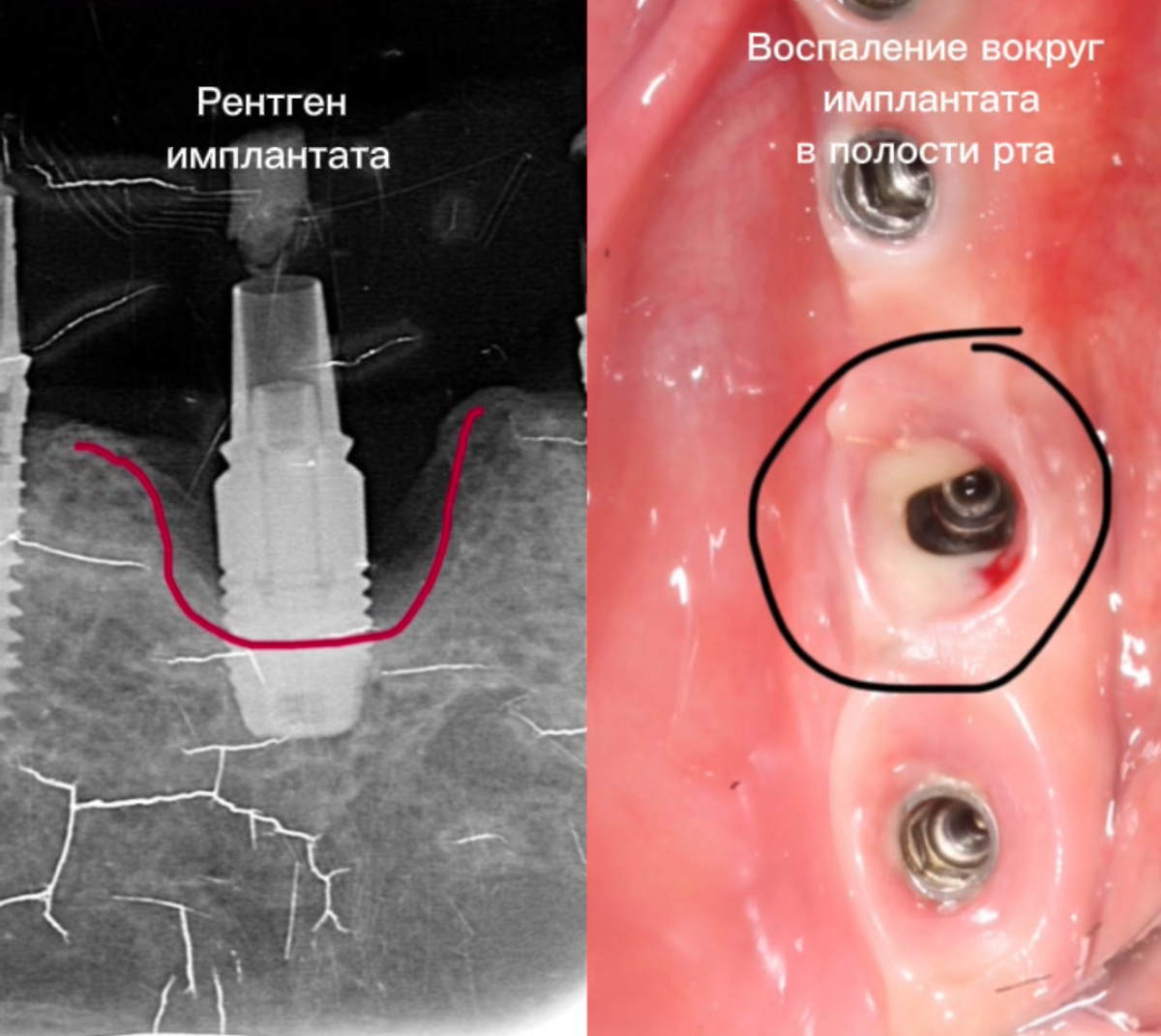 🔺 На фото 1 видно: вокруг имплантата косточка «просела», это классический пример периимплантита.