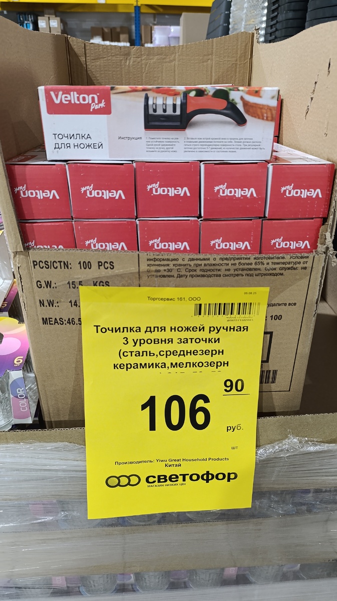 Всех приветствую, мои дорогие друзья и подписчики. Заехала в Светофор, чтобы снять для вас обзор. Смотрите, что можно купить. Светофор находится по адресу Ростовская область, Зерноградский район, город Зерноград, улица Садовая, 9А Точилка для ножей ручная 3 уровня заточки ( сталь, среднезернистая керамика,мелкозернистая керамика) цена 106.90 рублей. Страна Китай. Доска разделочная размер 50×30 см диаметром 37 см , фанера берёзовая , цена 151.90 рублей. Производитель Реал Плюс ООО. Чайник заварочный с ситом, пластик ручка, стекло 1,5 литров цена 323.90 рублей. Страна Китай. Чайник электрический со стеклянным корпусом Vinzor 1,8 л. 1500 Вт цена 767,50 рублей. Страна Китай. Набор ёмкостей для продуктов Fusion 5 шт ( 2,6 л, 1,7 л, 1,1 л, 0.63 л, 0.33 л) цена 144.50 рублей . ООО Фанбокс, Россия. Таз круглый цветной 19 л цена 149.90 рублей. Страна Россия. Набор мисок с крышками "Шарм" 4 шт ( 1,3 л,2,3 л, 3,7 л, 5,6 л) цена 305.90 рублей. Альт-Пласт ООО, Россия. Набор ко
