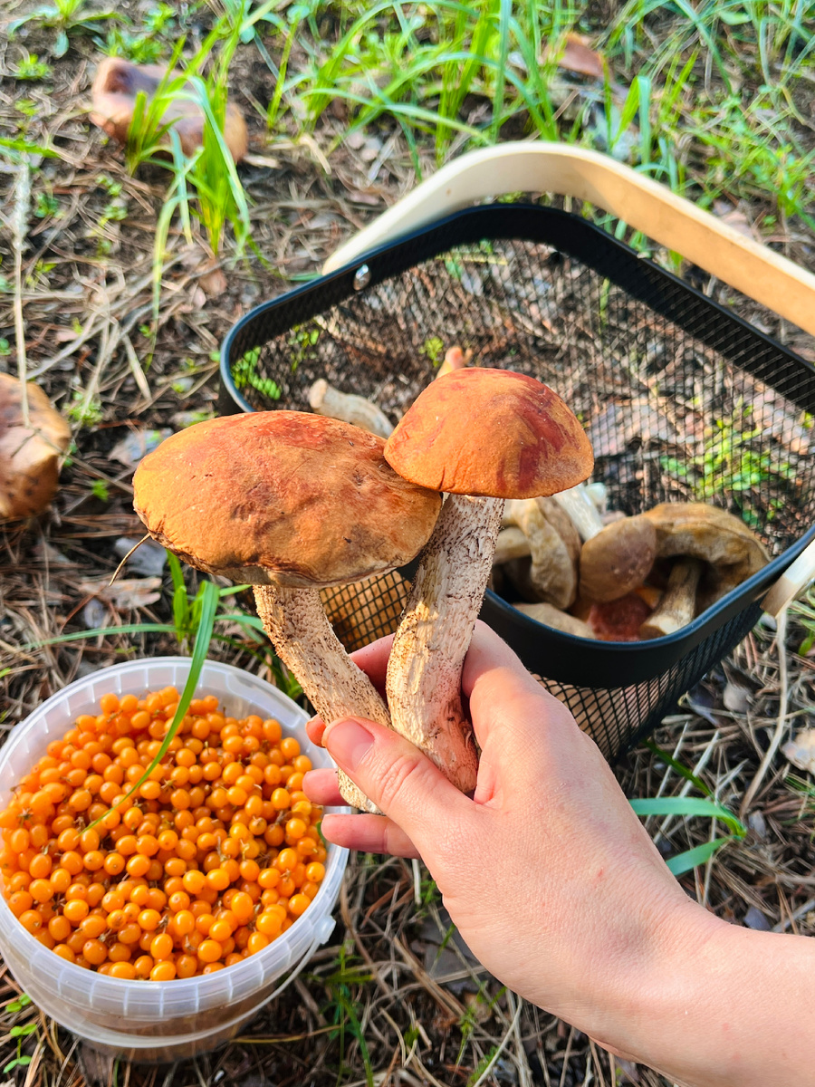 А я похож на новый «Икаpyс», А y меня такая же yлыбка, И как y него, И как y него, Оpанжевое настpое-е-е-е-ееенье! Чайфы вспомнились неспроста - спонсоры моего оранжевого настроения - облепиха с подосиновиками! Прекрасно дополнили цветовую гамму друг друга! Крутейшая штука эта облепиха! Богатый состав витаминов, микроэлементов и омега жирных кислот позволяет смело назвать ее модным нынче словом «суперфуд». Я люблю заменять облепихой лимон в чае. Десяток ягодок на кружку делают ровно такую же кислинку, как ломтик лимона. Основные запасы в морозилке так и расходую. А вот собрать облепиху - тот еще квест. При всем желании собирать прямо с куста не получится, точнее получится, но граммов 50. Крайне неудобно, если не сказать - невозможно. Поэтому самый распространенный вариант - отламывание веток. Делать это нужно адекватно, не обдирая дерево как липку, чтобы без вреда - там одну веточку, тут одну веточку, не все разом с одного куста. Крупные ветки, идущие от основных стволов, вов