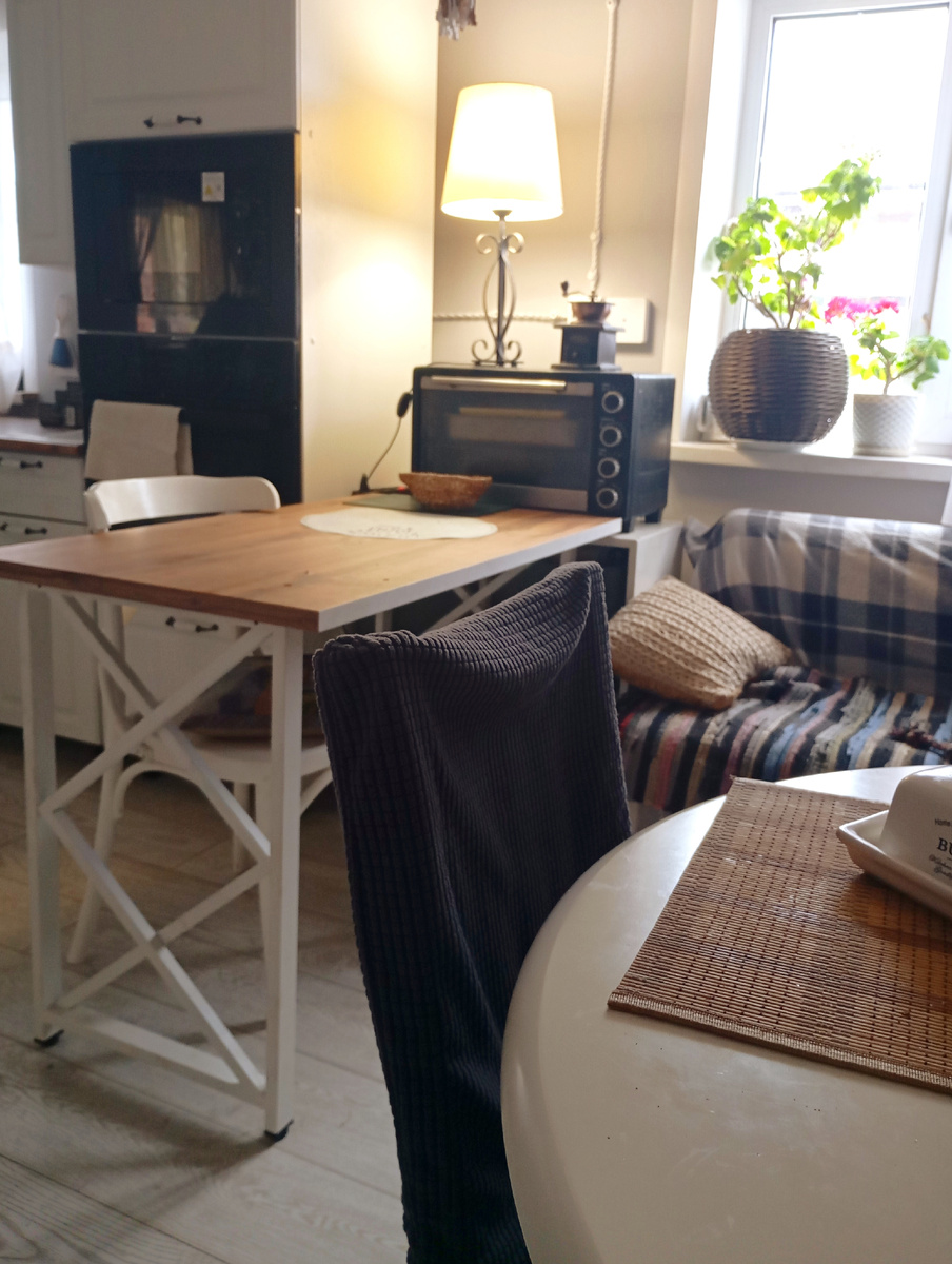 Всякие дополнения, сделанные моими руками, настольные лампы делают для меня кухню и зимой с утра уютной..