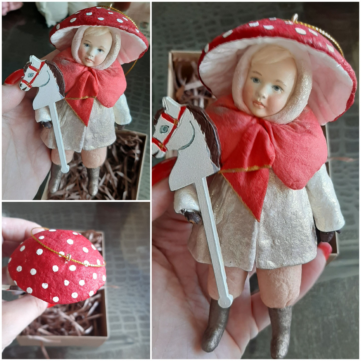 Думаю, моя елка точно займет первое место по оригинальности, и такое вы больше ни у кого не увидите и не услышите😁 Есть у меня одна необъяснимая страсть🙈 Я не знаю, с чем это связано, но я очень-очень люблю мухоморы. Внешне мне нравятся) Несколько лет назад мы с мужем оказались зимой на Бельбекской ярмарке в Бахчисарайском районе Крыма. Там продают товары ручной работы. Я купила тогда большого вязаного зайца для сына и 2 вязаных же мухомора для себя. С тех пор эти мухоморы лежали в коробке в шкафу. В августе этого года в Ростове Великом, гуляя в Кремле, я заглянула в магазин сувениров (шикарный, кстати, магазин, много красоты там на любой вкус🔥). Иду я, полки рассматриваю. Все такое красивое. Ну красивое и красивое, что я, красивого не видела, что ли?)) Как вдруг- она. Ватная игрушка- девочка-мухомор. С лошадкой-символом 2026 года. В домике- коробочке. Вся такая нарядная и пухлощекая! (Прям, как Наталья Вадимовна😁😁😁) Взрослая тетенька Наталья Вадимовна строго и серьезно посмот