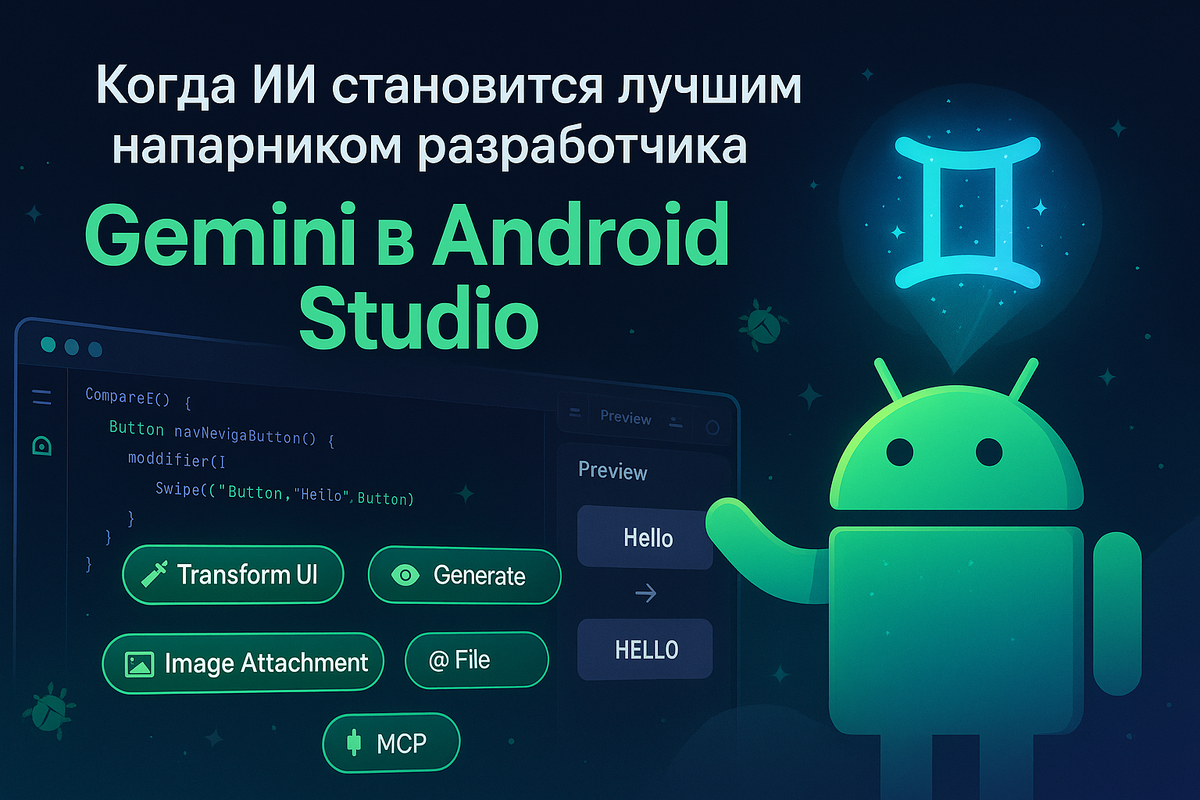 Или как Google превратил Android Studio в почти разумное существо Друзья, сегодня у нас история о том, как Mountain View решил, что программистам живётся слишком легко, и добавил ещё больше магии в Android Studio. Встречайте — Gemini в Android Studio. Gemini 2.5 Flash — тот самый ИИ, который теперь живёт прямо в вашей IDE и обещает сделать разработку настолько простой, что даже джуны перестанут плакать по ночам. Спойлер: не перестанут, но слёз станет меньше. Теперь можно просто написать "сделай мне кнопку красивой", и Gemini теоретически превратит ваш Compose Preview в нечто достойное. На практике — ну, помним мы обещания ИИ делать всё за нас... Правой кнопкой → "Generate Compose Preview" → магия происходит. Или не происходит. Но попытка засчитывается! Кстати, команда из Entri утверждает, что сократила время разработки UI на 40%. Либо они гении, либо очень хорошие маркетологи. Теперь можно прикреплять картинки для контекстного кода. Покажите Gemini скриншот багнутого интерфейса — получ