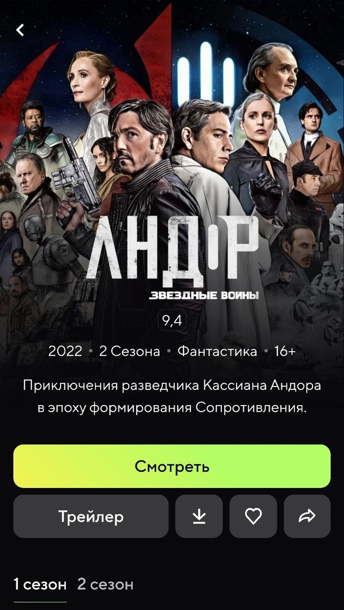 Посмотрел оба сезона сериала по Звёздным Воинам "Андор" Меня не хило так заманил сериал актёрским составом и рейтингом на Кинопоиске (8.6), я думал ну вот посмотрю сериальчики в духе именно хороших фильмов по Звёздным Воинам, а не тому что делают сейчас, но всё оказалось как-то очень грустно. Весь сериал по факту показывает как из Андора, рождается один из главных повстанцев и можно было столько интересного напридумывать, но каких-то интересных идей в сериале нет, героев в какой-то момент становится так много что я вообще уже ничего понимал и путался, половина персонажей вот прям совсем ничего не сделают для сериала и их просто сольют в конце, а портит всё это тот факт что вместо 6-7 серий в сезоне как в обычных сериалах их тут в два раза больше (11-12) "затянули сериал" это ещё мягко сказано От меня 6 из 10 и моё непонимание почему он так всем понравился