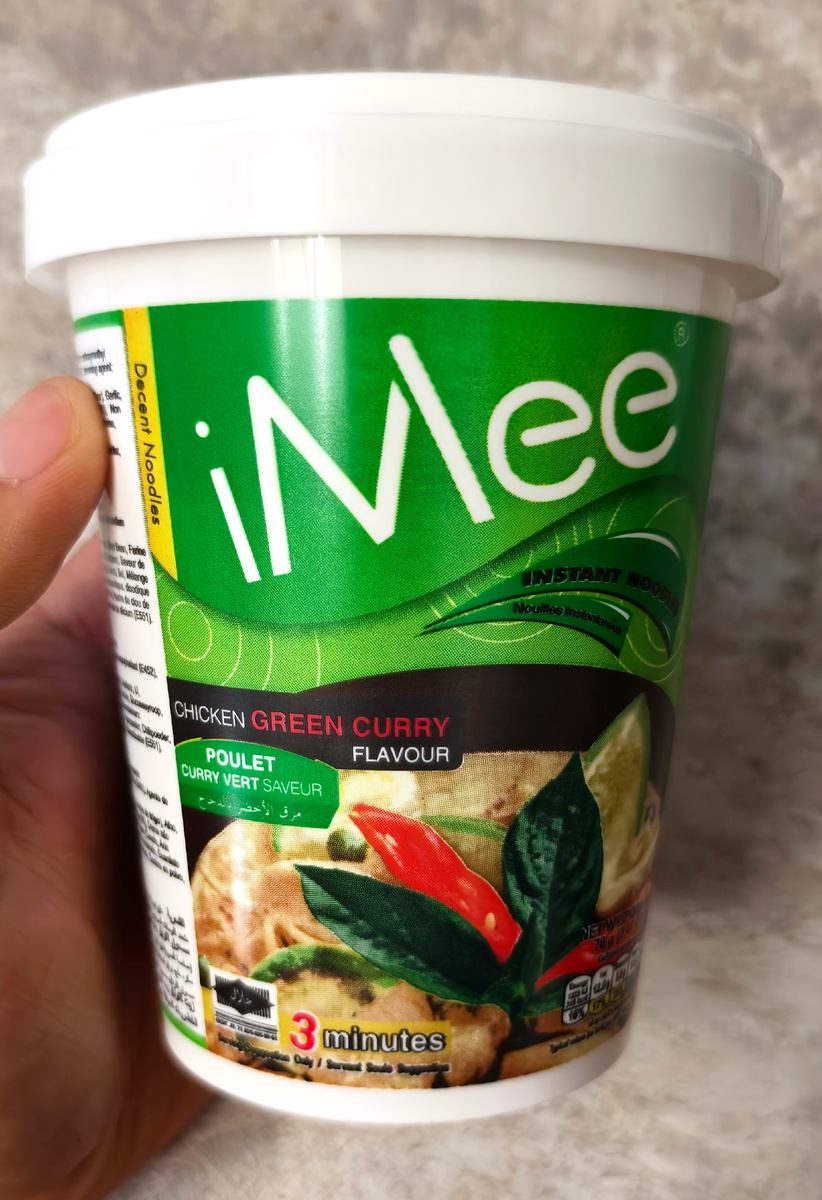 Пробую тайскую лапшу со вкусом курицы с зелёной пастой карри