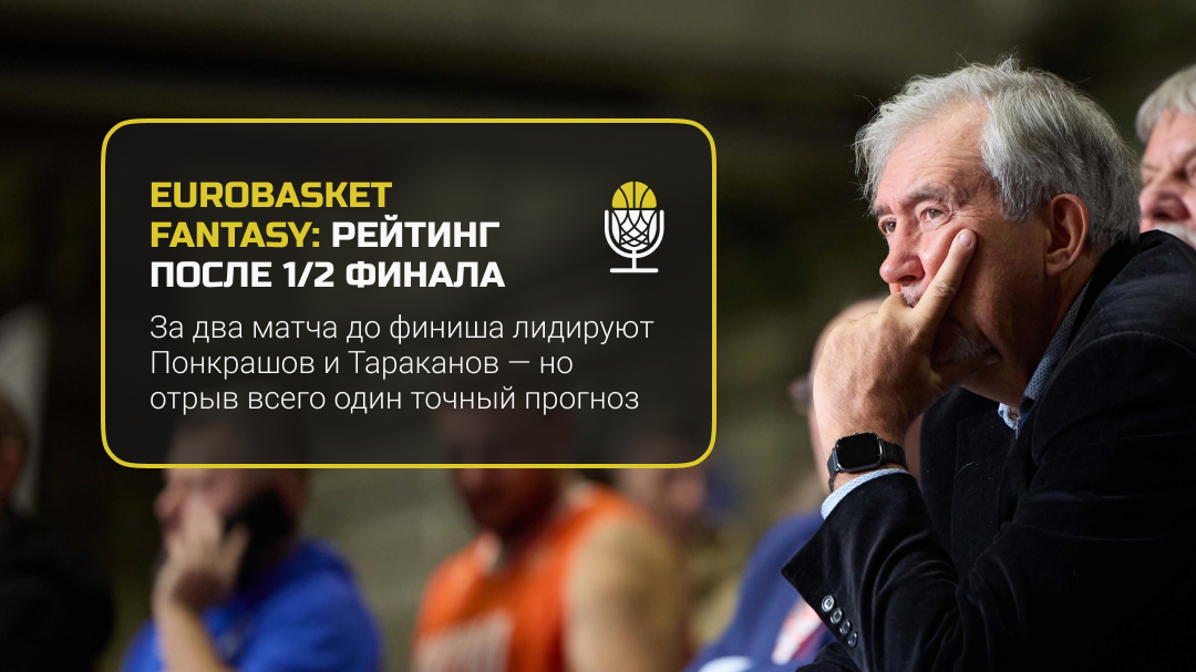 🧮 Eurobasket Fantasy от «Перехвата»: промежуточные итоги после 1/2 финала Впереди — только два матча. Два матча, которые и определят победителя и призеров экспертного конкурса прогнозов на Евробаскет. Накануне двух главных игр у нас очень плотная борьба в турнирной таблице: ▪️ Понкрашов — 59 очков ▪️ Тараканов — 59 очков ▪️ Кучеренко — 58 очков ▪️ Мальцев — 58 очков ▫️ Вяльцев — 57 очков ▫️ Годлевский — 55 очков ▫️ Сандлер — 55 очков ▫️ Семернинов — 55 очков ▫️ Григорьев — 54 очка ▫️ Моргунов — 54 очка ▫️ Воронов — 53 очка ▫️ Карасев — 53 очка ▫️ Семенов — 53 очка ▫️ Дячок — 52 очка 👉🏽 Владимир Дячок на этот раз пошел ва-банк, чтобы догнать убежавших вперед лидеров, но… не вышло. Обе рискованные ставки не сыграли и отбросили чемпиона Евролиги назад. 👉🏽 Помимо Владимира Викторовича, еще Евгений Воронов и Роман Семернинов верили в Грецию. Жаль, но сама Греция в себя не верила и подтвердила общее мнение наших экспертов — в финал проходит Турция (угадали 11 человек из 14). 👉🏽 Сразу