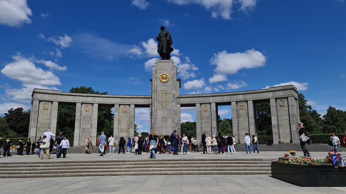 Сегодняшние фотографии праздника Победы в Берлине 9 мая 2025 у советского военного мемориала в Тиргартене. По дороге к мемориалу, у Бранденбургских ворот, встретился этот дедуля, с которым с радостью фотографировались туристы. Фото-инсталляция на Парижской площади С западной стороны от Бранденбургских ворот собирался Бессмертный полк. «Спасибо советским солдатам за освобождение» «Нет войне, Мир с Россией» «Спасибо советскому народу» «Спасибо …» Частица Вечного огня с Могилы Неизвестного Солдата из Москвы. Про-украинская толпа, которая постоянно провоцировала посетителей мемориала матерными кричалками не обращая внимания на детей. В ответ на это, люди начали скандировать «Россия, Россия!». Полиция не вмешивалась.