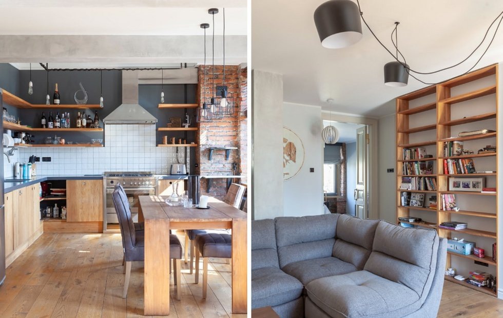 Заказчик попросил дизайнера Оксану Цыбакову помочь оформить трешку в сталинке в стиле лофт. Виктору понравились кирпичные стены и характер квартиры, и переехать в нее он хотел как можно скорее. На 130 квадратах разместились просторная кухня-гостиная, спальня, детская и вместительная гардеробная.
