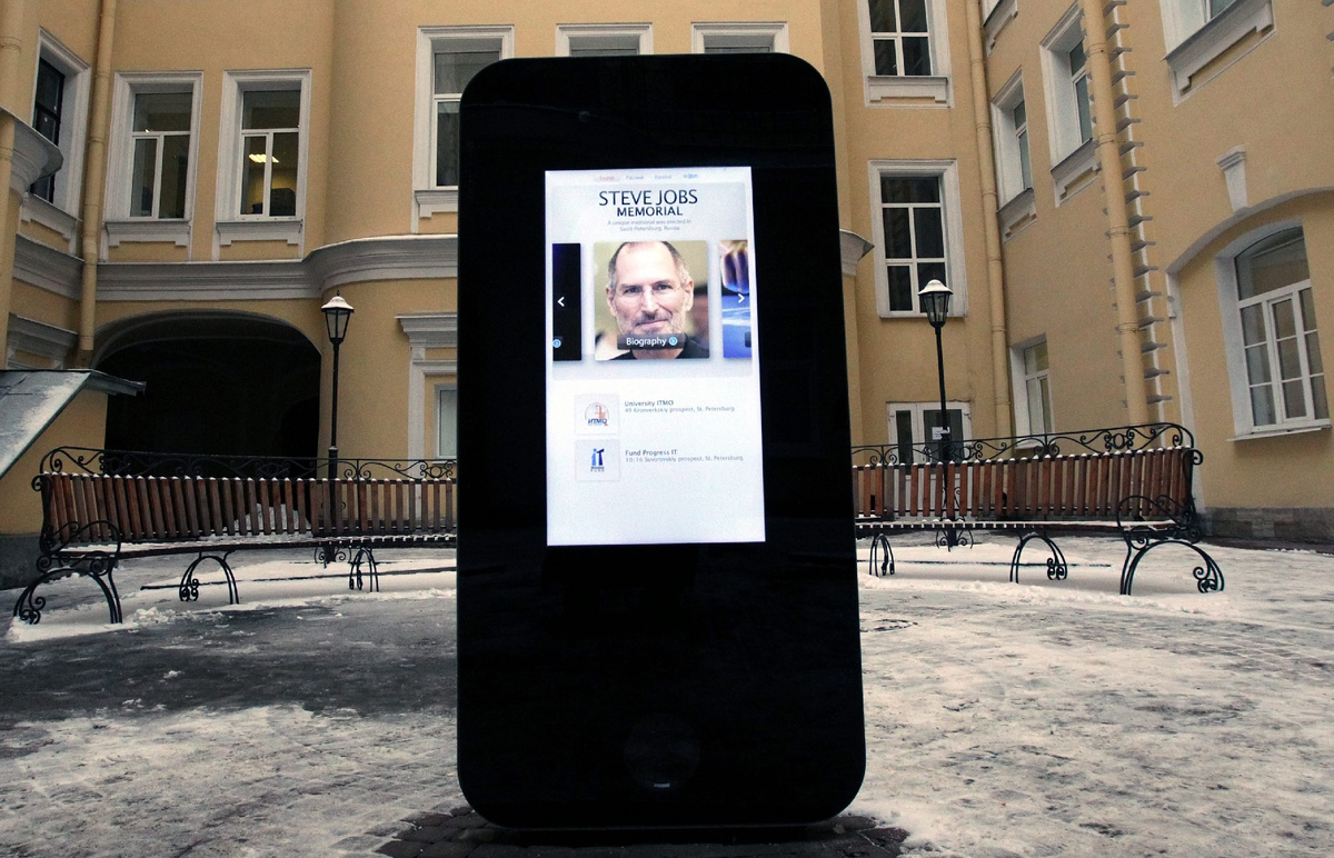 В Санкт-Петербурге находился памятник Стиву Джобсу — основателю корпорации Apple. Это первый памятник Стиву Джобсу в России и третий памятник в мире.