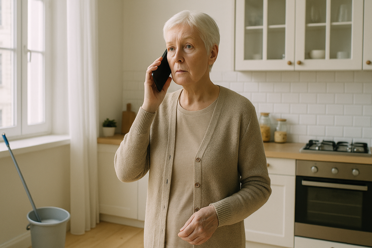 Вера Ивановна мыла пол, когда зазвонил телефон.