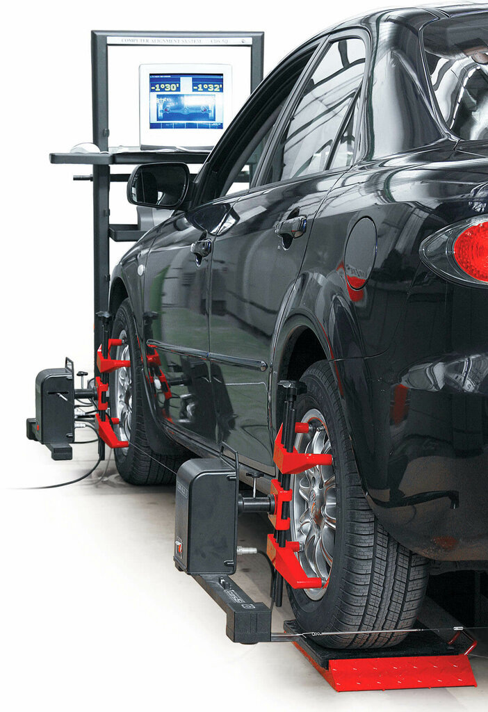 С помощью специального оборудования (3D-стенда) измеряются текущие углы установки колес.