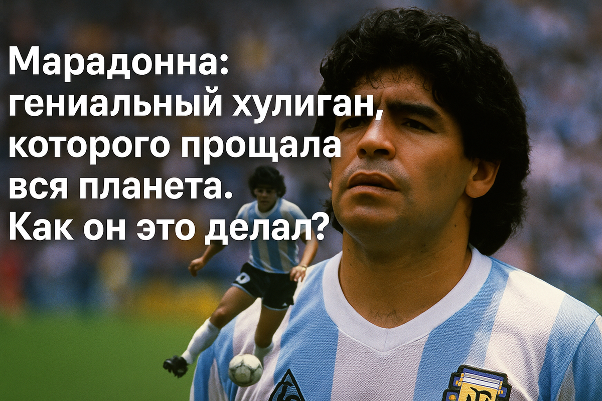 А теперь представьте, что такой человек стал кумиром целой планеты. Его выходки сходили ему с рук с размахом, которому позавидовал бы любой голливудский «плохой парень». Его прощали то, за что других уничтожали. Знакомьтесь - Диего Марадона. Как у него это получалось? Давайте разбираться.