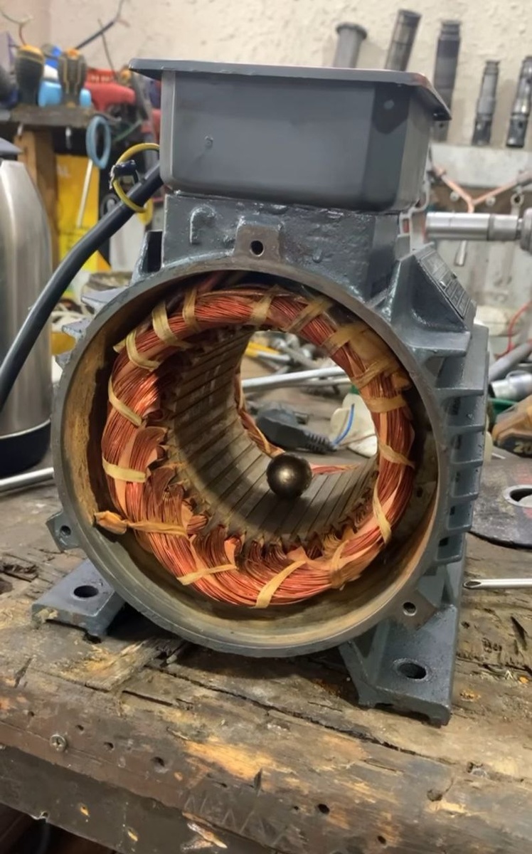 Асинхронный двигатель — вещь надёжная, но и у него случаются поломки. Одна из самых коварных — межвитковое замыкание в обмотке статора. Найти его не всегда просто: визуально проводка может выглядеть нормально, изоляция целая, а короткозамкнутый виток уже «подъедает» мотор изнутри. Существует любопытный «гаражный» способ диагностики: в пустой статор кладут маленький металлический шарик. Двигатель подключают к сети, и шарик начинает бешено кататься внутри обмоток. Но фокус в том, что в месте межвиткового замыкания шарик вдруг притормаживает или зависает. Физический принцип Когда через обмотки статора протекает ток, он создаёт вращающееся магнитное поле. В нормальном моторе поле распределено равномерно, и шарик, находясь в нём, будет только «гоняться» по окружности. Если же в каком-то пазу есть витковое замыкание, то в этом месте возникает локальный «горячий» электромагнитный очаг. По короткозамкнутому витку начинает течь дополнительный ток, усиливающий поле и создающий заметную асимметри