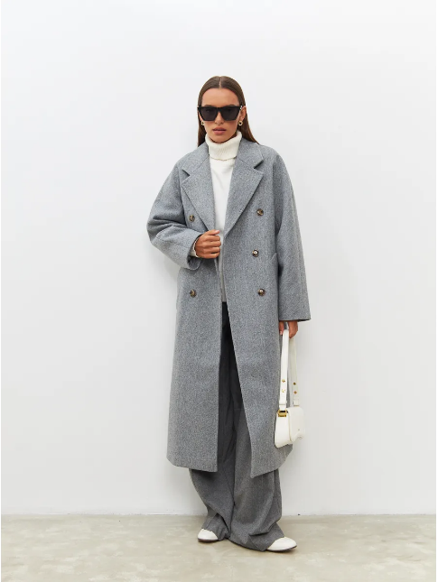 Давайте начнем с основы — с того, что будет согревать нас в первые осенние холода. Это длинное серое пальто, которое не просто согреет, а станет настоящим украшением вашего образа. Его силуэт оверсайз – это не дань моде, а проявление заботы о вашем комфорте, ведь он позволяет чувствовать себя свободно, не сковывает движений и отлично смотрится на любой фигуре. Этот фасон невероятно элегантен и визуально вытягивает силуэт, придавая образу утонченности.